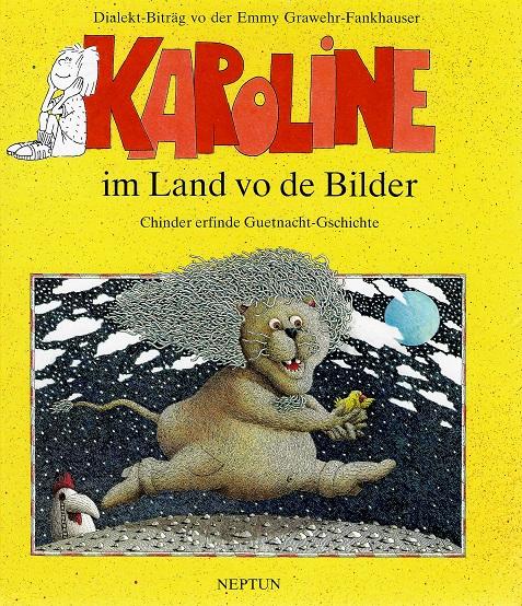 Füfzäh Bilder verzelle Gschichte. Wenn du sie lang gnueg aluegsch werde sie vilicht läbig und verzellä sie dir. Du chasch sie wiiterverzelle, molde oder ufschriibe so wie d Karoline wo vergnüegt dur das Buech spaziert.